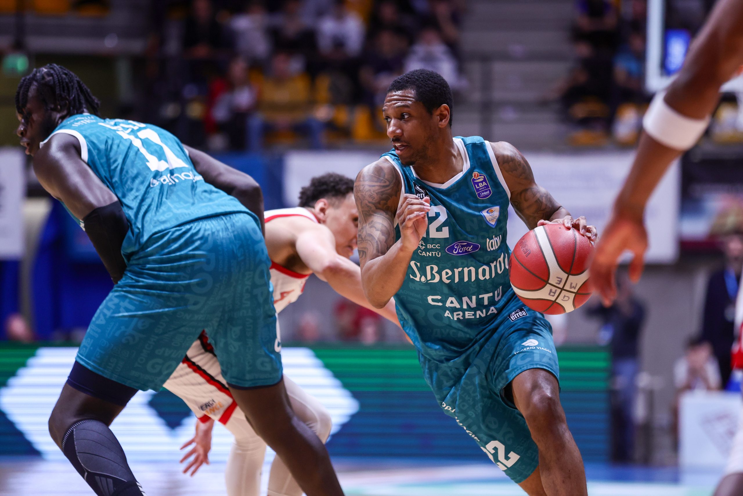 Dopo un inizio di stagione complicato, la Dinamo era riuscita a risalire la classifica. Ora si ritrova però pienamente coinvolta nella corsa per evitare la retrocessione. L’artefice della scossa positiva era stato Veljko Mrsic, subentrato a Massimo Bulleri. Il tecnico croato ha messo a punto un sistema basato su un gioco offensivo, che porta Sassari a essere il quarto miglior attacco della LBA, ma anche la seconda peggior difesa. A guidare i sardi sul parquet è una coppia di giocatori con grande abilità nel trattamento di palla formata da Desure Buie, miglior assistman del campionato con 7.2 passaggi vincenti e 13.8 punti a partita, e dal lituano Laurynas Beliauskas, che sfiora la doppia cifra di media. Durante il lungo infortunio del terzo miglior marcatore della squadra, Carlos Marshall (13.6 punti di media), aveva ricoperto con disinvoltura il ruolo di ala piccola un Riccardo Visconti, che però potrebbe lasciare il posto al compagno americano, rientrato ormai a pieno nelle rotazioni. L’ala grande del quintetto è il capitano Rashawn Thomas, garanzia di solidità con i suoi 9.7 punti e 6 rimbalzi di media. Al suo fianco, sotto ai tabelloni, viene schierato il promettente centro classe 2003 Luca Vincini. Il capocannoniere della Dinamo è la combo-guard Daryl Macon che, uscendo dalla panchina come sesto uomo, segna 17.5 punti a partita. Con lui garantiscono minuti sugli esterni il playmaker Alessandro Zanelli e l’ala Marco Ceron. Ha diverse occasioni per incidere anche il centro americano Nick McGlynn, che completa le rotazioni insieme ai due italiani Andrea Mezzanotte e Fadilou Seck.