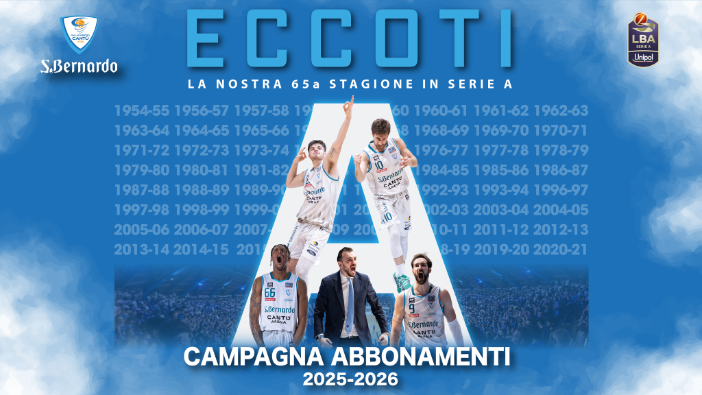 Si è conclusa martedì 7 ottobre la campagna abbonamenti “Eccoti” per la stagione 2025-26 dell’Acqua S.Bernardo Cantù. Il dato finale è di 3.038 tessere sottoscritte, un risultato in netta crescita rispetto alle 2.024 della passata annata sportiva.
